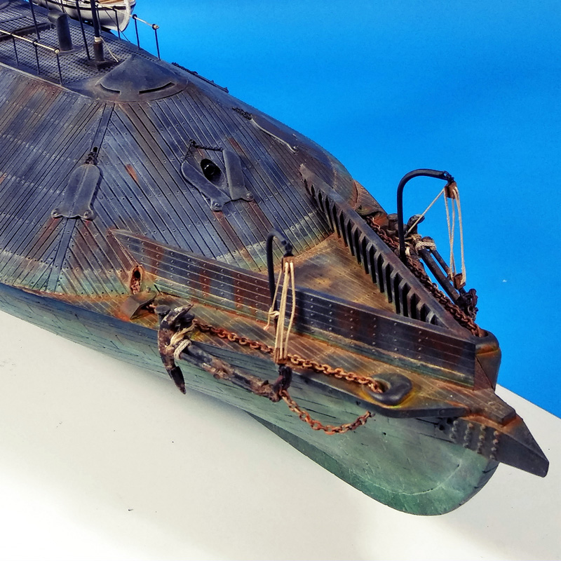 This kit is a non-cutaway model, but features a hull and casemate with scale thicknesses to allow modification to a cutaway. This model is mostly resin parts to keep production costs down, but also features a number of cast metal fittings, brass rods, flag sheet, and detailed instructions.